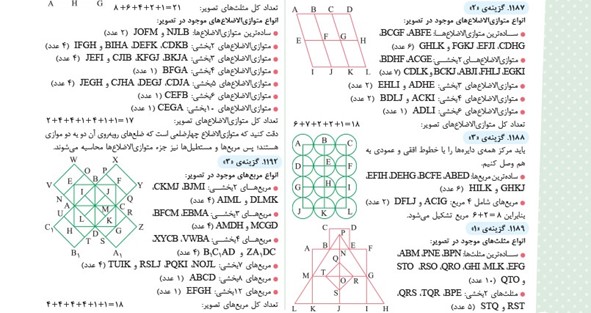 - هوش و استعداد فضایی و فنی: این مبحث ممکن است برای تعداد زیادی از دانشآموزان چالشی بهنظر برسد اما با مطالعهٔ درسنامه و تحلیل مثالها میتوانید به مهارت بالا و تسلط کافی برسید.