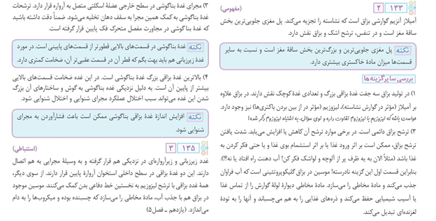 - کادرهای نکته: این کادرها پرتکرارترین بخش پاسخنامه را تشکیل دادهاند. بعد از اینکه پاسخ هر تست را بررسی کردید میتوانید مجموعهای از نکات مرتبط را نیز مطالعه کنید و مطالب را به یکدیگر ربط دهید. نکات ترکیبی بین پایههای دهم، یازدهم و دوازدهم از مهمترین موارد در این قسمت بهشمار میروند.