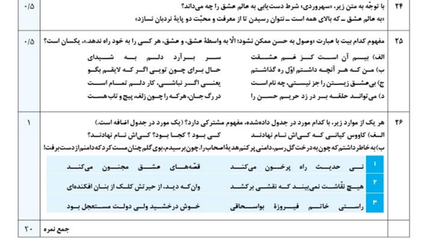 بانک سوال کتاب امتحانت فارسی دوازدهم مهروماه