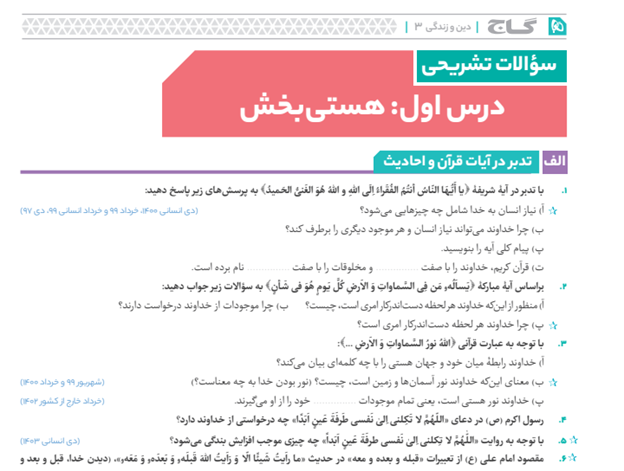 بررسی بانک سوالات فرمول بیست دین و زندگی دوازدهم انسانی گاج