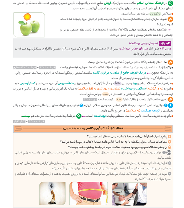 درسنامههای کتاب فرمول بیست سلامت و بهداشت دوازدهم گاج