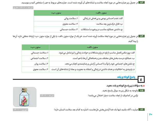 بانک سوال کتاب فرمول بیست سلامت و بهداشت دوازدهم گاج
