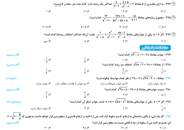 بانک سوال ریاضی یازدهم تجربی تست خیلی سبز